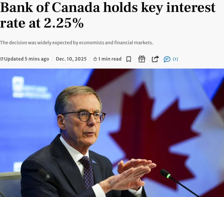 这一决定完全符合市场预期。毕竟早在10月,行长Tiff Macklem就提前剧透,只要经济增长和通胀符合预期,就不会再继续降息。
